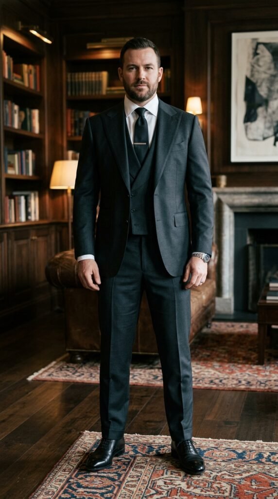 A two-piece suit can sometimes mask proportion issues through a well-cut jacket alone. A three-piece cannot. The waistcoat reveals torso length, midsection shape, and shoulder-to-waist ratio with precision. This means getting it right matters more—and the reward for getting it right is significantly greater.